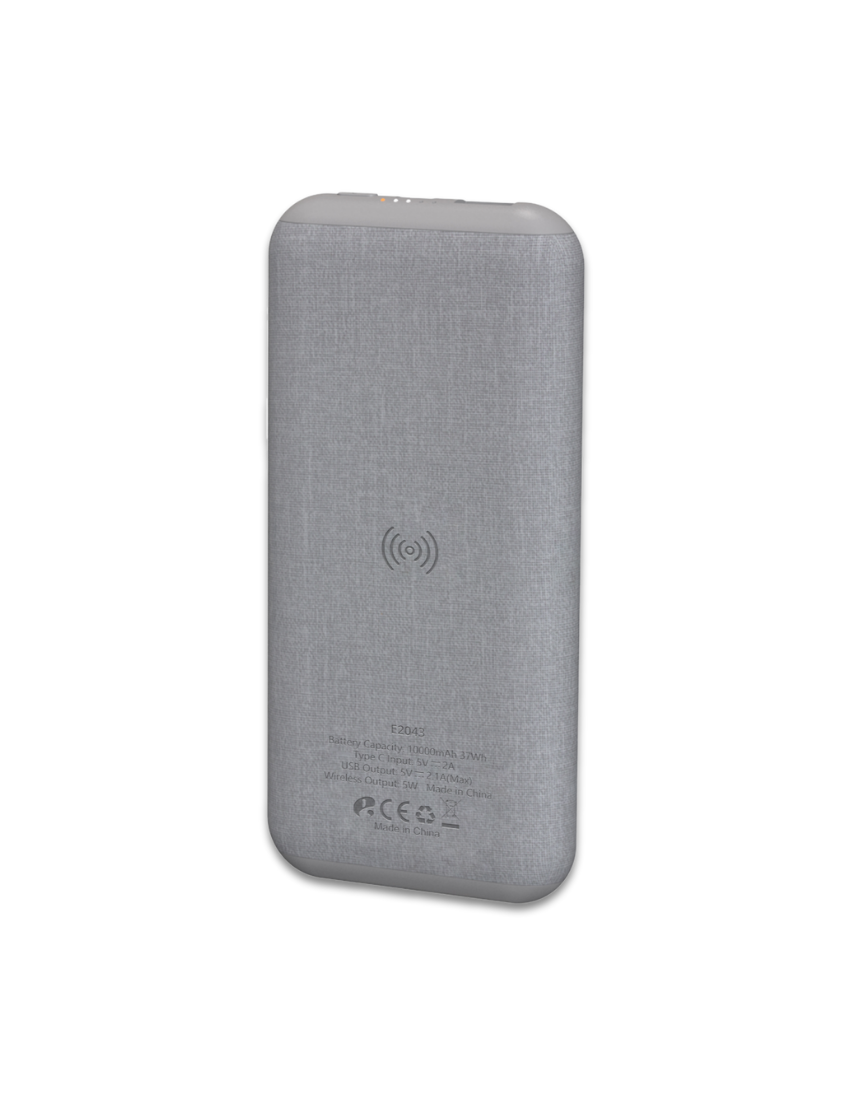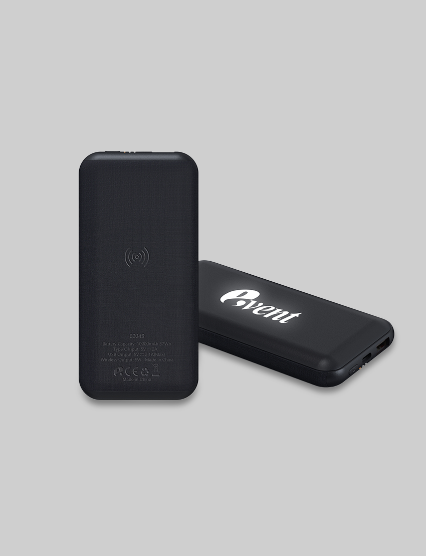 Light Up 10000mAh (37Wh) wireless powerbank in PU and ABS Material. TypeC Input DC5V 2A. USB Output DC5V 2.1A (Max). Wireless Charging Output 5W. Product Size 15X7.5X1.6cm. Packaging Paper Box