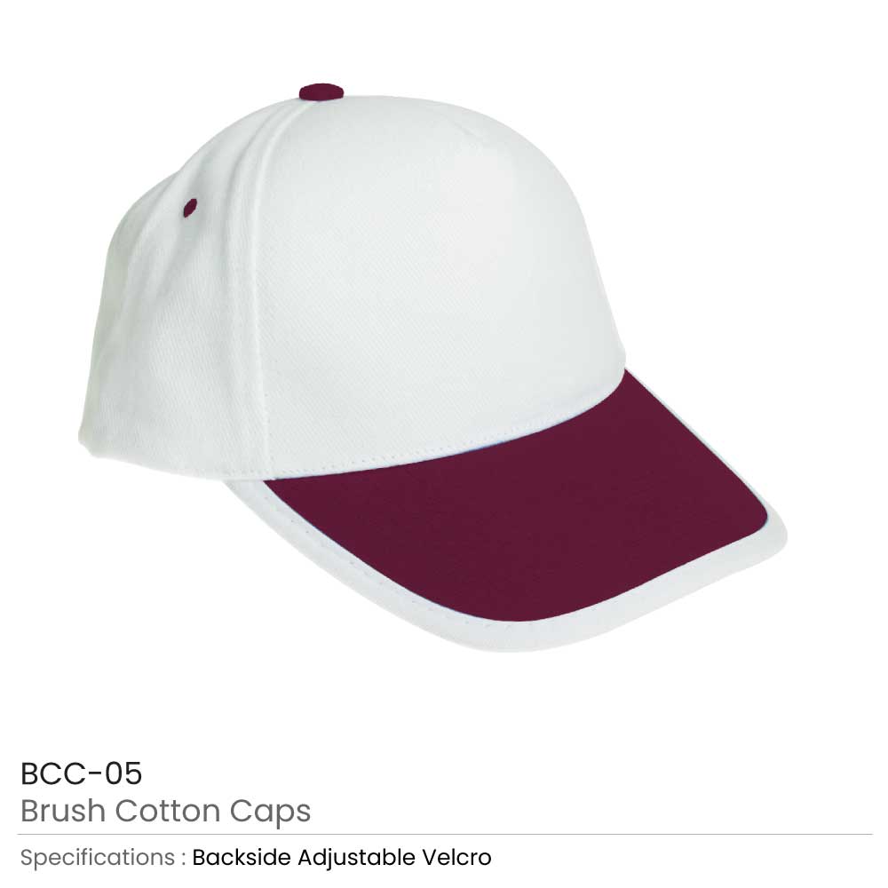 5 Panel Brush Cotton Cap in two colors with top button and eyelet & rim with Velcro at the back. Material: Cotton | Item Weight: 0.095 kg Packaging Details Pcs in Carton Box Carton Weight Carton Box Size 150 14.3 kg 52 x 45 x 56 cm Cap Printing Options Screen printing | Heat transfer | Embroidery