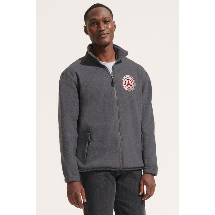SOL'S NORTH, men's zipped fleece jacket, 100% polyester high density fleece 300, short cut, anti-pilling, reinforcing tape on neck, high lined collar, 2 zipped pockets with flap, fitted cut, elasticated cuffs, back half moon yoke, elasticated drawstring at bottom. About sizes matching, please refer to the size chart in the product documentation section.